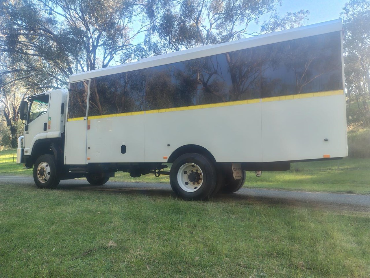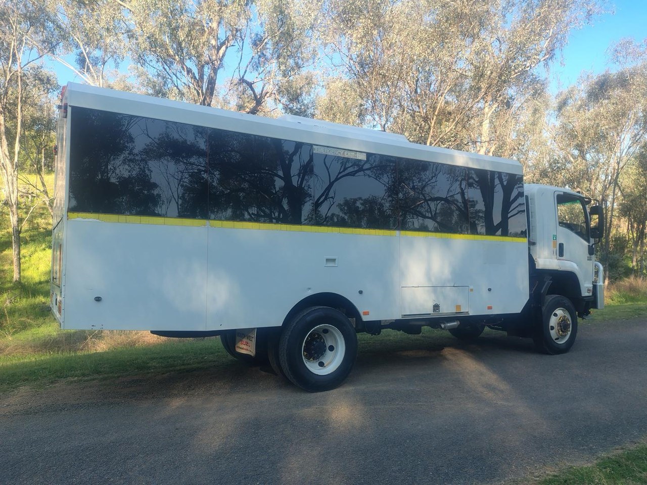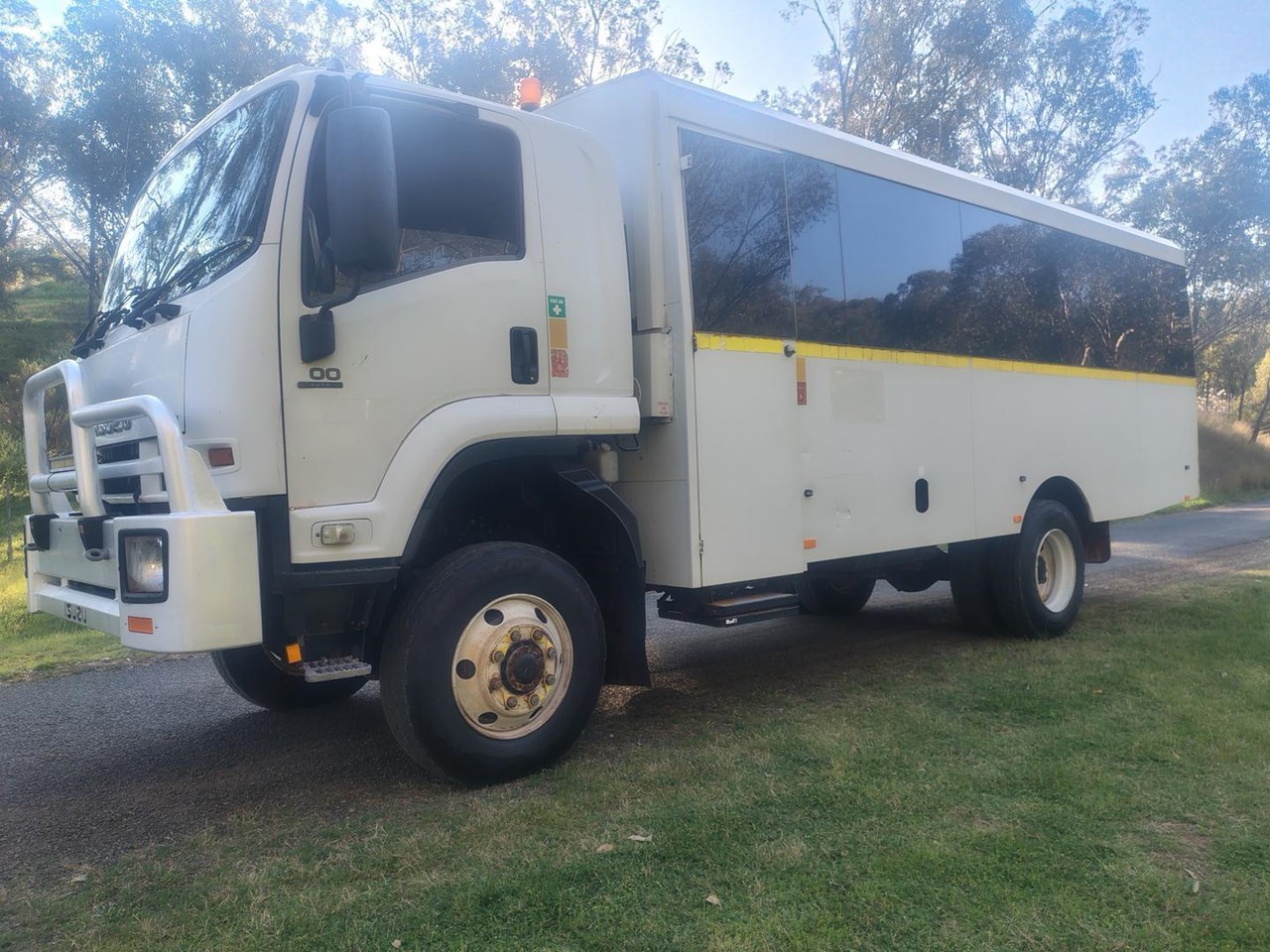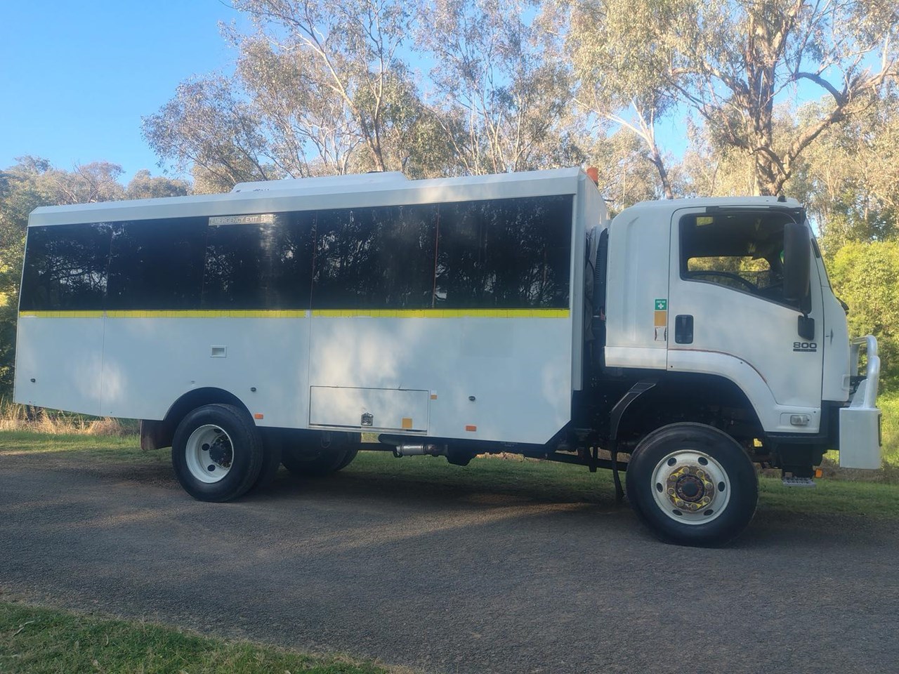 2013 Isuzu FTS 800 4x4 automatic 29 seat bus, 235 hp, Allison Automatic, 27 seats in bus body with rear luggage storage area, bull bar, high and low range 4x4. Rear airbag suspension, Very tidy bus with good history, clean and tidy, and runs very well. Ideal for remote area access for workers or tour industry and would also suit motor home conversion.