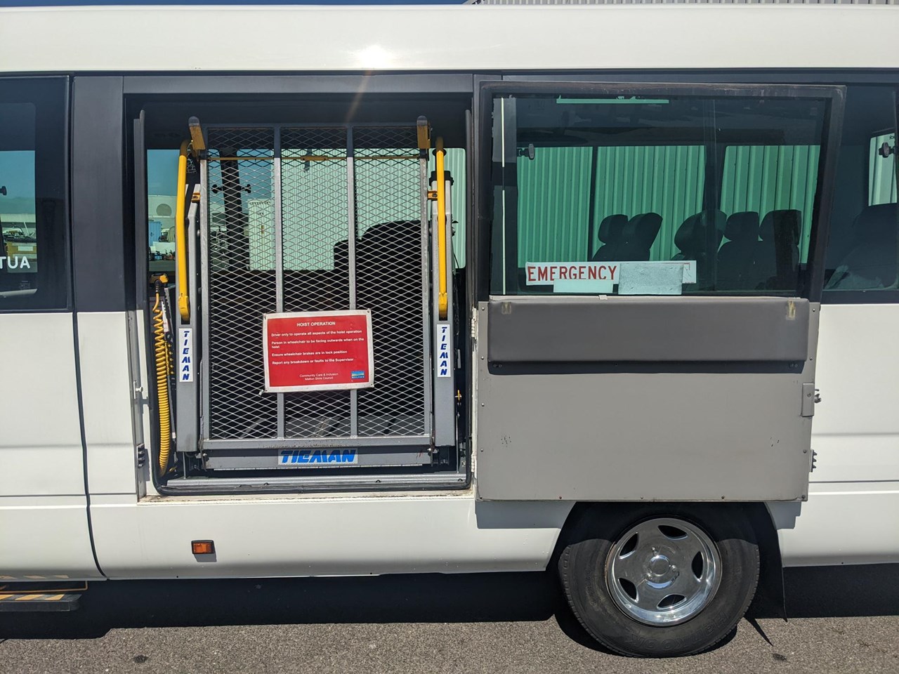 First Delivered March 2012, Deluxe Model, 4lt 4 Cylinder Turbo Intercooled Diesel, 4 Speed Automatic Transmission, Power Steering, Exhaust Brake, Tilt/Tele Adjustable Steering Column, Electric Operated Single Piece Side Tour Door With Extra Internal Step Plus Electric Slide Out Lower Step For Ease Of Entry, Factory Ducted Air Conditioning, Led Roof Clock, In Dash Slide Out Drink Holders, Tinted Windows, Rear Demister, Radio/CD Tuner, P.A. System With Microphone, Carpeted Engine Cover, Fire Extinguisher, Tieman TD350HL Electric/Hydraulic 350kg Capacity Wheelchair Lift Located Next To Side Entry Door Installed 20/06/2012 & With Isolator Switch, Set Of Wheel Chair Restraints, Steel Wall Protection Barrier At Wheelchair Position, Foldaway Double Seat With Lap Sash Seat Belts Opposite Wheelchair Entry Door, All Seats Are Cloth High Backs With Headrests And Integrated Lap Sash Belts, Seating Capacity Is 14 Passengers Or 12 Passengers Plus 1 X Wheelchair. 7.00x16 Radial Cleanskin Tyres Fitted With Chrome Wheel Covers.